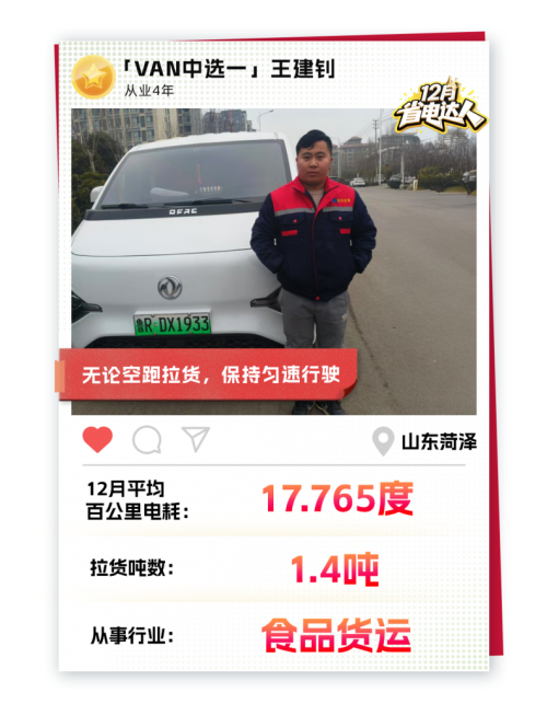 能够做到这样的“省下成本”,除了东风睿立达自身的产品实力之外,王师傅对于用车也有着自己的心得。他说:“尽量将车速稳定在80公里/小时左右,不论是空车还是载货都要控制在这个时速。我亲测过这个时速是最省电的黄金法则”。